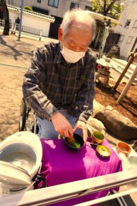 茶人さんと、主客のOさん(101歳女性)は、恒春園デイサービスのご利用者さんです。