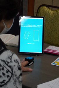 明治安田生命川崎支社の皆さんが、手の母指球を押し当てるだけで、皮膚に蓄積されたカロテノイドの量を測れる機械で測定してくださいました。