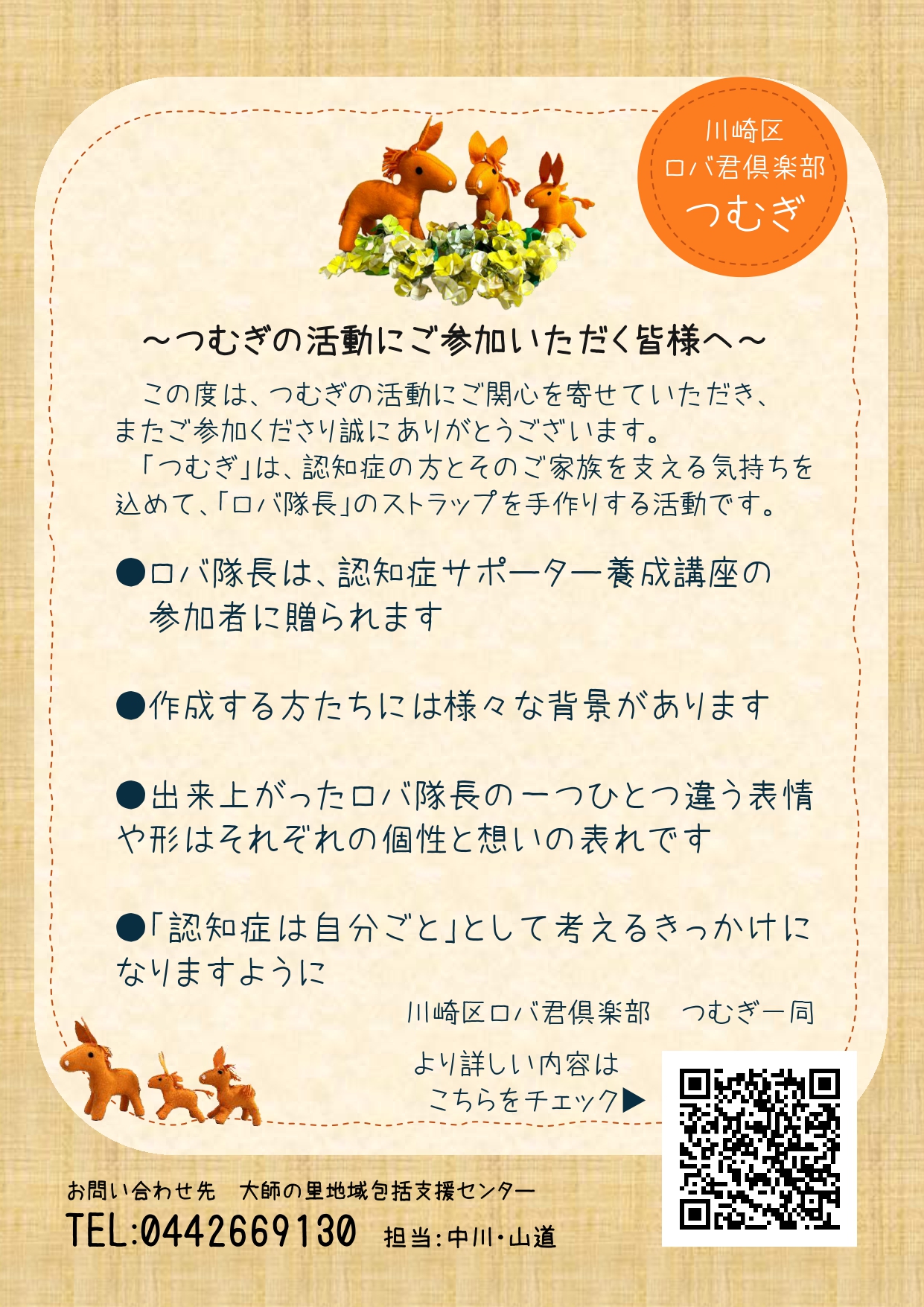 今年度(令和7年度)から始まった「川崎区ロバ君倶楽部 つむぎ」のここまでの活動状況を報告いたします。
