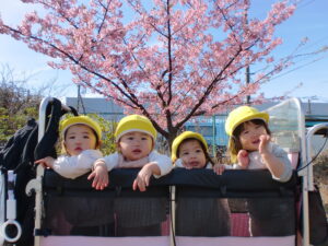 うさぎ、ひよこ組で近隣散歩に出かけました。ぽかぽか温かくいい気持ち✨お散歩日和でした😌上着を着て出発したので「暑いね~」と会話が弾んでいました🎵公園ではきれいに咲いている河津桜とはい、チーズ😊✌あっという間に春の訪れを感じました🌸今のクラスで過ごせるのは残り1ヶ月。残りもたくさん思い出を作っていきたいです😝💓