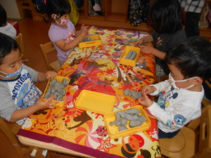 今年度も集会ではなく、幼児中心に各クラスで子どもの日についての由来を知り、ゲームをしたり、粘土で柏餅を作ったりして過ごしました。由来は園だよりにも書いてありますので読んでくださいね。鯉のぼりを見ながら、子どもたちの可愛い歌声も聞こえていました。鯉のぼりハンバーグはとても喜んで食べていましたよ。おやつの柏餅は乳児クラスは窒息の危険もあるのでゼリーに変更しています。幼児クラスからの提供になります。天気も良く子どもたちの作った鯉のぼり共々おもしろそうにおよいでいました。