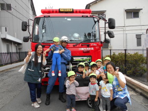 避難訓練 だいしの里保育園 2018年06月22日 6月21日に避難訓練を行いました。 消防署から消防士さんが来てくれて地震、火事の避難訓練のあと公園に移動して 先生たちの消化訓練をしました。 子どもたちは、消防自動車に大喜びで消防自動車の説明を聞いたり そばで見せてもらい大喜びでした。 一覧へ戻る